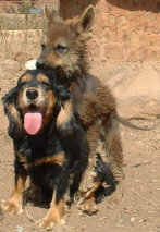 Here's Duffy, our dwarf german shepherd trying to find out if his dwarfism is genetic or just congenital! (Purists don't worry: Yin Yan, our cocker spaniel, wasn't on heat!)